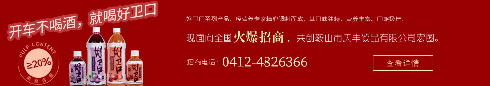 鞍山市慶豐飲品有限公司始建于1992年,是專業從事山楂汁飲料研發、生產及銷售的產銷一體化大型民營企業。 工廠位于遼寧中部的遼河三角洲腹地,地處環渤海經濟區圈鞍山市臺安工業園區內(京沈高速公路臺安出口西200米處),擁有占地面積23000多平方米的花園式飲料生產基地,公司資金實力雄厚,引進多條國內外先進的飲料自動化生產線,擁有高級技術人才及生產工人近百名,是東北地區專業山楂汁研發生產型企業,主要生產“好衛口”山楂汁系列,及“好衛口”橙汁系列,藍莓汁系列,蘋果醋系列,4大系列飲品近二十余種的果汁飲料